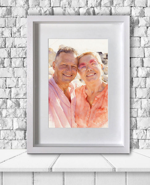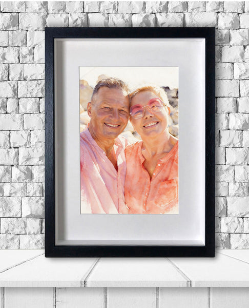 Your lookalike watercolour painting will then be presented in a mount and choice of black or white frame. the print is recessed to the back of the frame to add that authentic artistic feel.